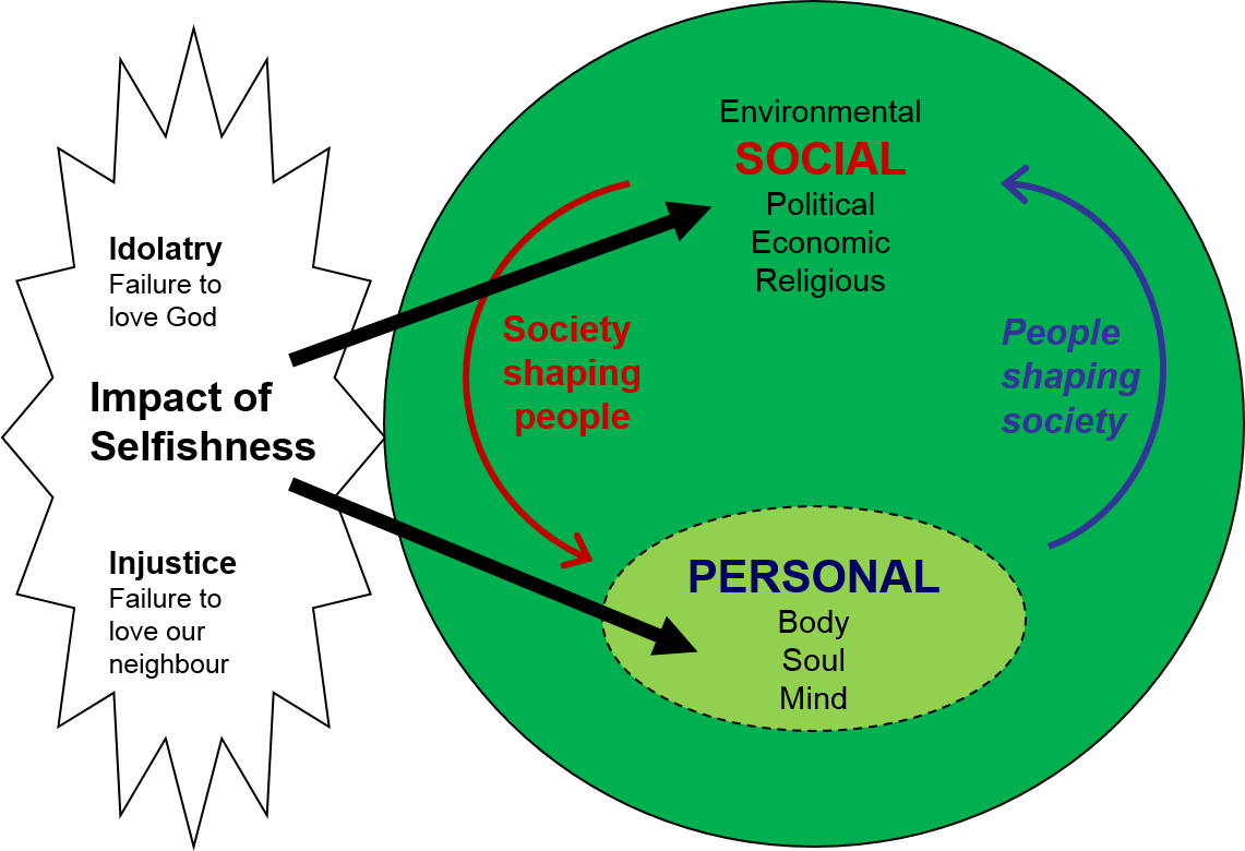 Our whole social order – the economic, political and religious, has been warped by these self-regarding tendencies. There is a ‘crack in everything’ which the Bible calls sin. It expresses itself in both idolatry (failure to love God) and injustice (failure to love our neighbour) and is manifested in both in individual choices and in the corporate and structures. Rather than being a way of judging others, sin is the best way of explaining the mess that the world is in.