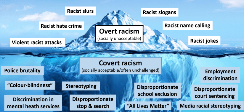 Almost everyone agrees with the wrongness of the overt, obvious form of racism which is above the surface. The more complex and demanding aspect is to grapple with the covert forms of racism ‘below the water line’.