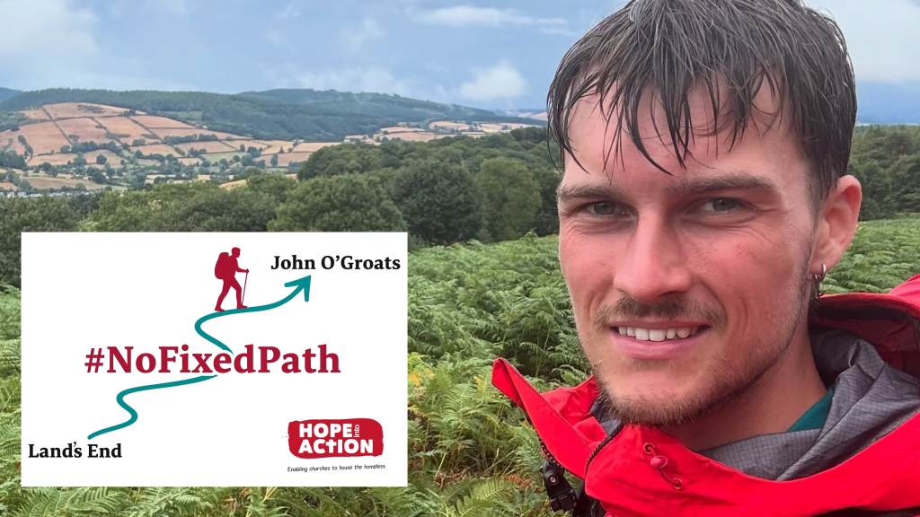 Ethan Malcolm is a 22 year old student who decided earlier this year to take up the challenge to walk the entire length of the country, from Land’s End to John O’Groats. He doing it to raise funds for Hope into Action and is aiming to cover the 12oo miles in 60 days.