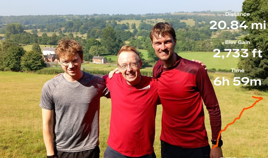 Hope into Action allow staff to take regular retreat days each year and so I took one on Friday to join him (and his mate Luke) to walk one leg covering 20 miles in the Derbyshire Peak district. It was beautiful countryside but the walk was far more demanding than I had anticipated. The ups and downs and the endless stiles, whilst carrying a tent, meant I was struggling in the second half.