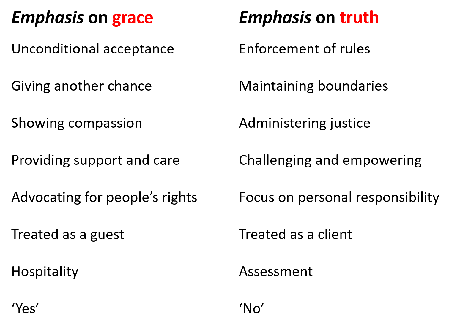 The balance and tension between grace and truth is critically relevant to how we help others and for all social action. Have a look at this chart: