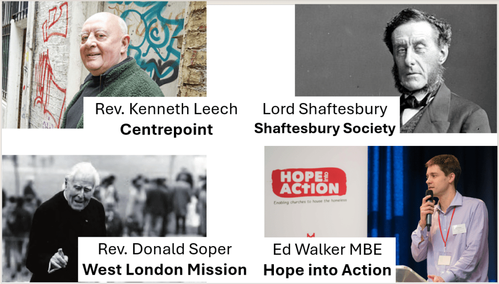All of these men were different: Soper and Leech sacramental socialists, Lord Shaftesbury an aristocratic evangelical Tory, but each of these men had prophetic vision for how the Christian faith could make a difference to poverty and homelessness in their era. All 4 were providers who inspired and oversaw practical work which was anchored in their faith and a vision of God’s kingdom. They did not simply preach, write books or set up Think Tanks: rather their faith was incarnated and embodied in providing practical help to people on the margins.